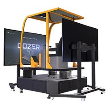 ブルドーザーVRシミュレーターは、VR環境でブルドーザーの運転訓練ができる製品です。実際のブルドーザーに近い操作装置をVR映像と連動させ、安全な環境で低コストで効果的な訓練が可能です。ブルドーザー特有の限られた視野でのトレーニング感がよく再現されており、車体に伝わる重厚な振動まで実感できるトレーニング用シミュレーターです。